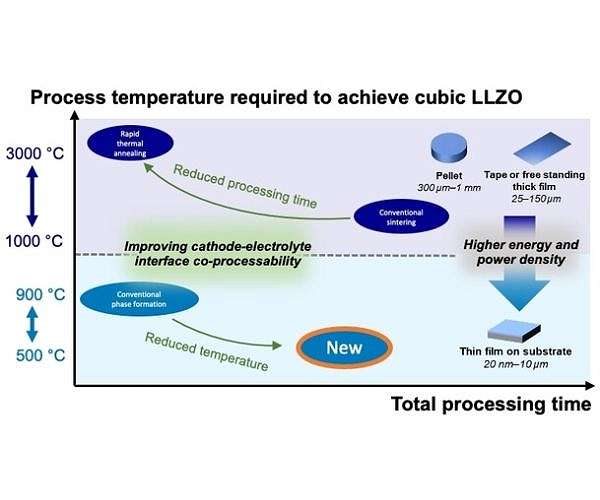 Based on the insights they gained into the crystallization process, they developed a route by which cLLZO is obtained as a dense, solid film after 10 hours of annealing at the relatively low temperature of 500C-with no sintering. For future battery designs, this method will allow for the integration of the solid LLZO electrolyte with sustainable cathodes that could avoid the use of socioeconomically critical elements such as cobalt.