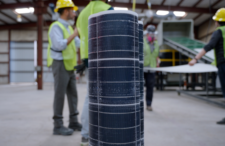 Laminate pulled from a solar panel before recycling at SolarCycle’s Odessa, Texas facility.