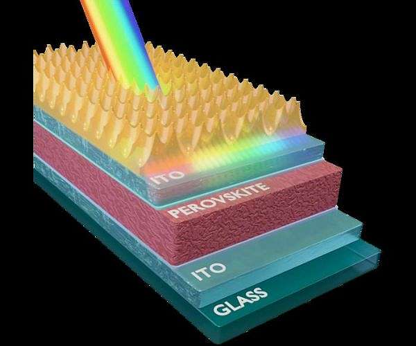 Cost effective perovskite cells with a structured anti-reflective layer