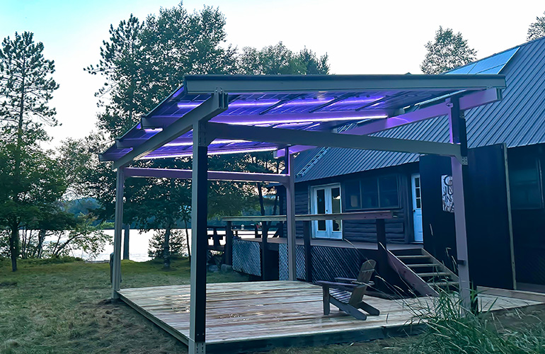 A SunLounge solar canopy by Infinity Rack.