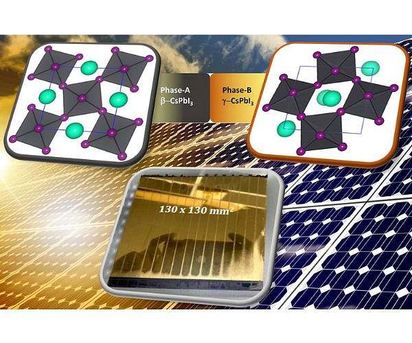 One solution involves turning instead to all-inorganic perovskite materials like cesium lead iodide, which has good electrical properties and a superior tolerance to environmental factors. However, this material is polymorphic, meaning it has multiple phases with different crystalline structures. Two of the photoactive phases are good for solar cells, but they can easily convert to an undesirable non-photoactive phase at room temperature, which introduces defects and degrades the efficiency of the solar cell, the scientists said.
